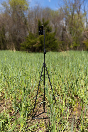 Offering an adjustable camera height of 0 to 52 inches and a rotating shaft that swivels 360 degrees, the Stic-N-Pic trail camera stand can hold up to three trail cameras at once. Made entirely of steel and featuring a 3-prong stand, the Stic-N-Pic stands securely on virtually any terrain.